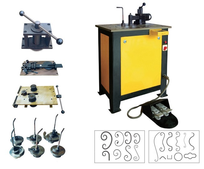 Model scroll pattern bending machine takes the all excellence from JIAXIN- DW16C,Besides that,it also have angle bending device,smal round spring bending device and arc bending device.